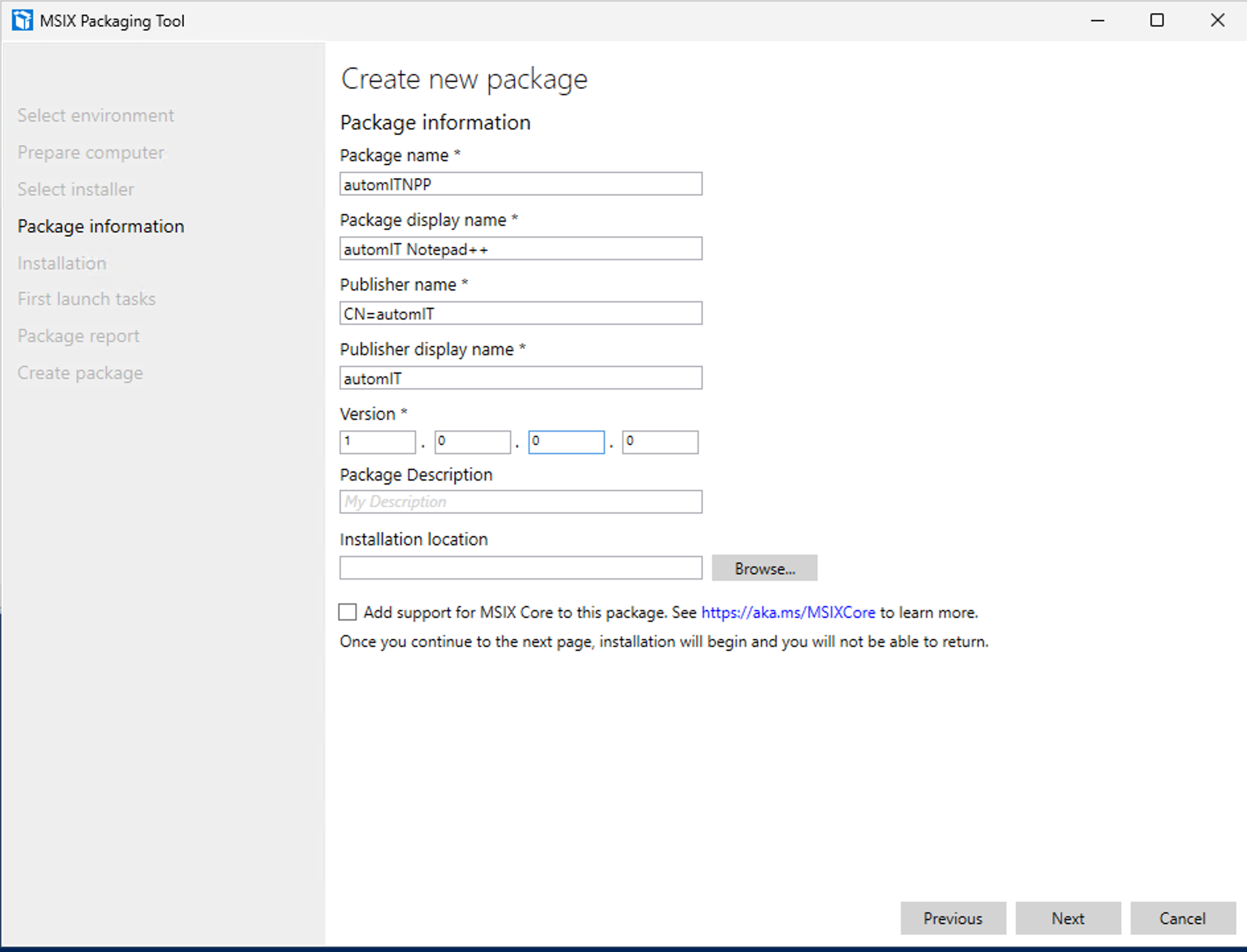 MSIX Packaging Tool