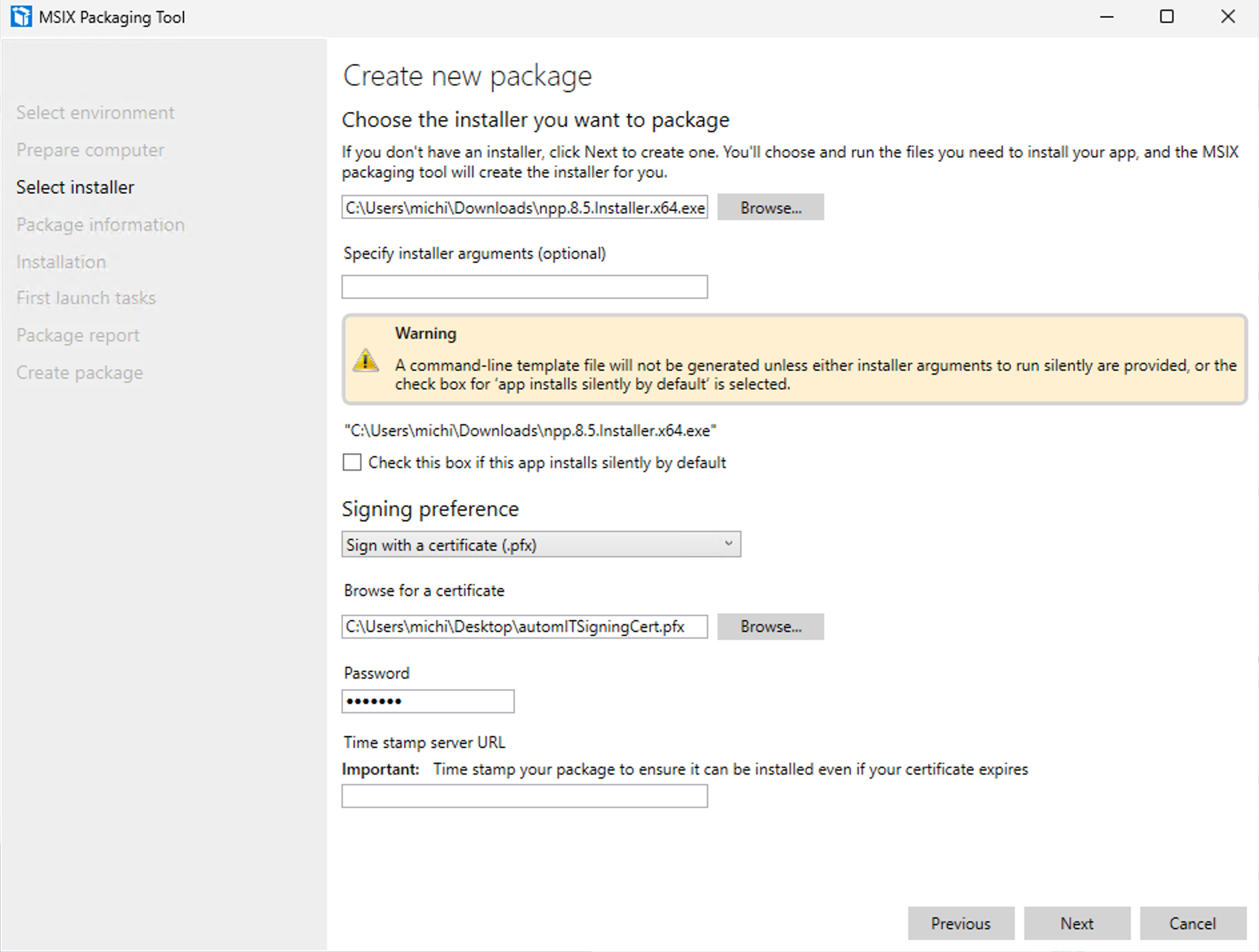 $password = 'test123' #Remember that one, you need it again when signing your MSI
